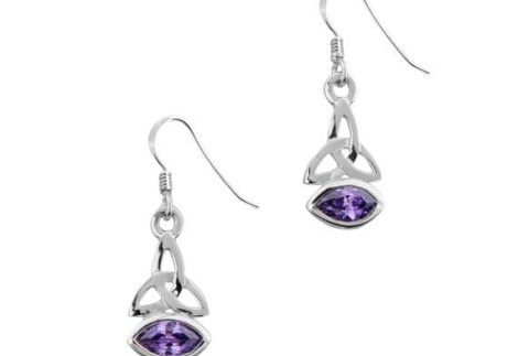 Celtic Trinity Knot Silver Drop Earrings with Amethyst colour stone