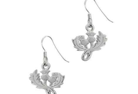 Scottish Thistle Silver Drop Earrings with Amethyst colour stones