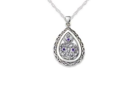Scottish Thistle Silver Teardrop Pendant with Amethyst colour stone