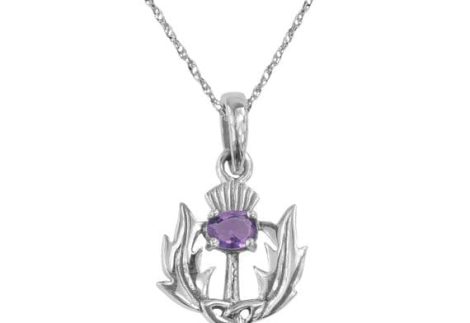 Scottish Thistle Silver Pendant with Amethyst colour stone