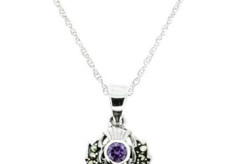 Scottish Thistle Silver Pendant with Marcasite & Amethyst colour stone